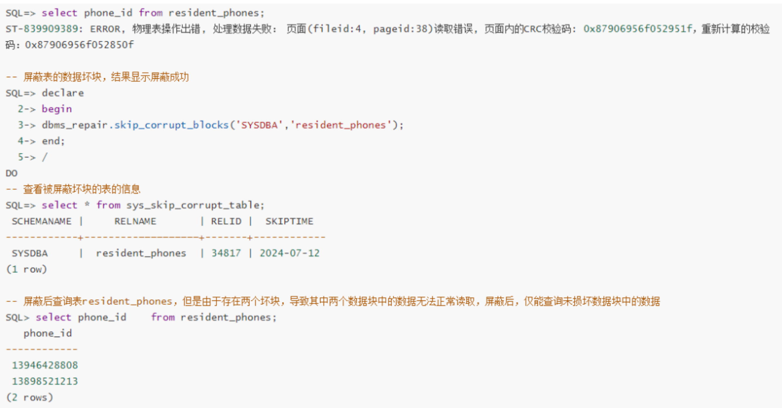 神通數(shù)據(jù)庫管理系統(tǒng)首先通過段掃描主動檢測數(shù)據(jù)頁物理/邏輯損壞,記錄壞塊位置并計(jì)數(shù);隨后將壞塊標(biāo)記為屏蔽狀態(tài),阻斷異常訪問并更新系統(tǒng)表,避免故障擴(kuò)散。修復(fù)階段依托多副本集群能力,從健康副本獲取有效頁面數(shù)據(jù),經(jīng)版本校驗(yàn)及重做(Redo)生成修復(fù)頁,刷盤后二次校驗(yàn)確保數(shù)據(jù)一致性,成功后自動清理系統(tǒng)表記錄;若修復(fù)失敗則觸發(fā)預(yù)警并建議邏輯備份,降低數(shù)據(jù)丟失風(fēng)險(xiǎn)。全流程嵌入多級校驗(yàn)及容錯(cuò)機(jī)制,實(shí)現(xiàn)壞塊從發(fā)現(xiàn)、隔離到修復(fù)的閉環(huán)管理,顯著提升數(shù)據(jù)庫可靠性與業(yè)務(wù)連續(xù)性,為關(guān)鍵數(shù)據(jù)提供主動防護(hù)能力。